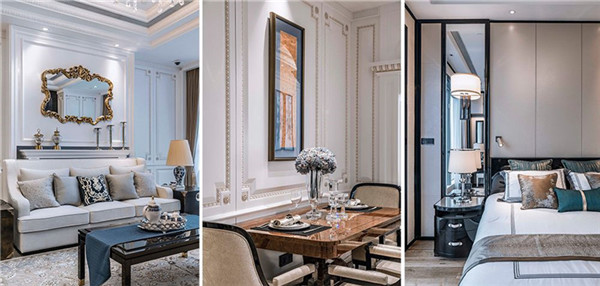 本項(xiàng)目公寓部分室內(nèi)硬裝、軟裝設(shè)計(jì)均由港源設(shè)計(jì)團(tuán)隊(duì)完成。設(shè)計(jì)師從豪華汽車、游艇、私人飛機(jī)的高品質(zhì)裝潢中獲取設(shè)計(jì)靈感;設(shè)計(jì)風(fēng)格采用改良的古典歐式風(fēng)格,從簡(jiǎn)單到繁雜、從整體到局部,精雕細(xì)琢,鑲花刻金都給人一絲不茍的印象,將豪華、優(yōu)雅的涵義以新時(shí)代的面貌予以呈現(xiàn),并保留了材質(zhì)、色彩的基本風(fēng)格,可以強(qiáng)烈地感受傳統(tǒng)的歷史痕跡與渾厚的文化底蘊(yùn),同時(shí)又摒棄了過于復(fù)雜的肌理和裝飾。