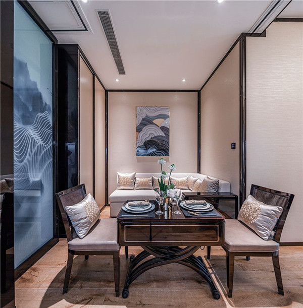 松竹梅,是中華傳統(tǒng)文化中的歲寒三友,松四季常青;竹經(jīng)冬不凋;梅則迎寒開花。也為高端公寓的內(nèi)部陳設(shè)提供了豐富設(shè)計(jì)元素,與西方現(xiàn)代的設(shè)計(jì)手法碰撞出毫無違和的火花。