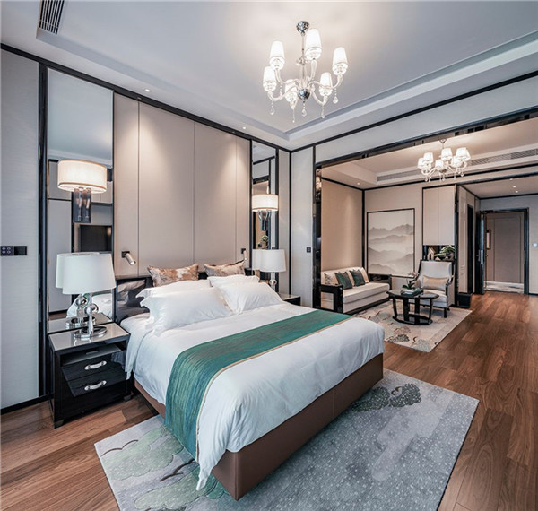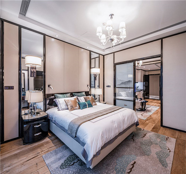 比照五星級(jí)酒店的標(biāo)準(zhǔn),公寓里的床采用了70厘米的床高設(shè)計(jì),床墊軟度適中,床頭軟裝采用真皮包裹,集品質(zhì)感和舒適度為一體。