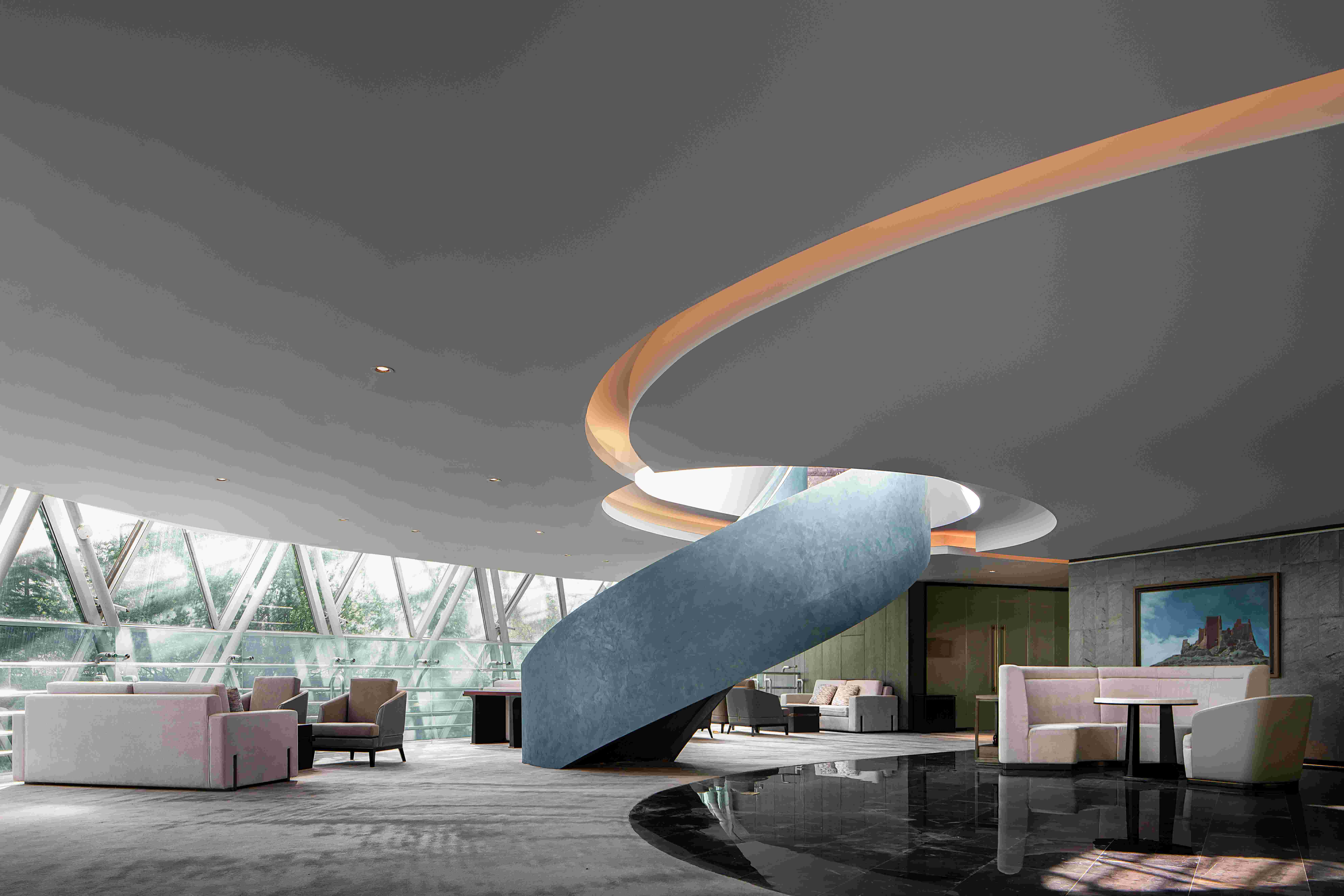 ▲ Check in 等候區(qū)及通往行政酒廊旋轉樓梯