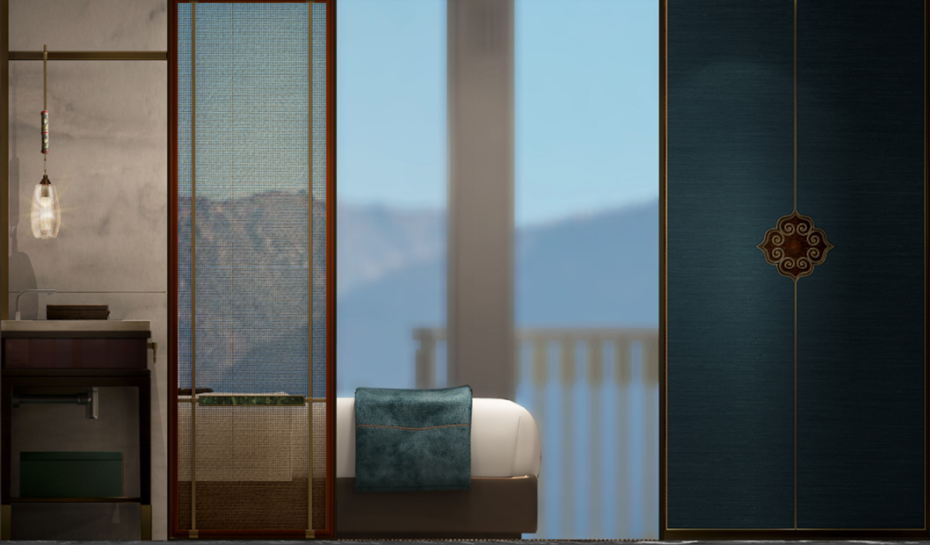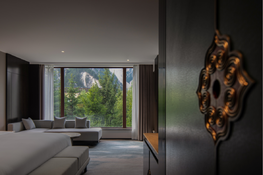 邊瑪墻、經(jīng)典藏式窗戶用現(xiàn)代手法解構重組,打造朝圣路上的圣殿。