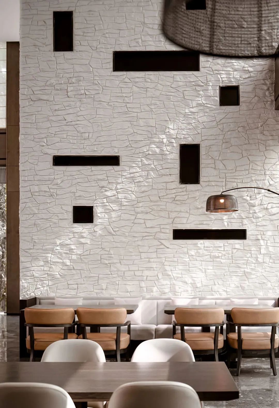 JHD integrated all factors, preserved the Tibetan color impression, refined and finely portrayed the regional elements. For cost control and consideration of the earthquake zone, the façade material innovatively adopts thin stone panels with natural texture and Tibetan style side marble wall practice to portray an atmosphere with Tibetan culture.