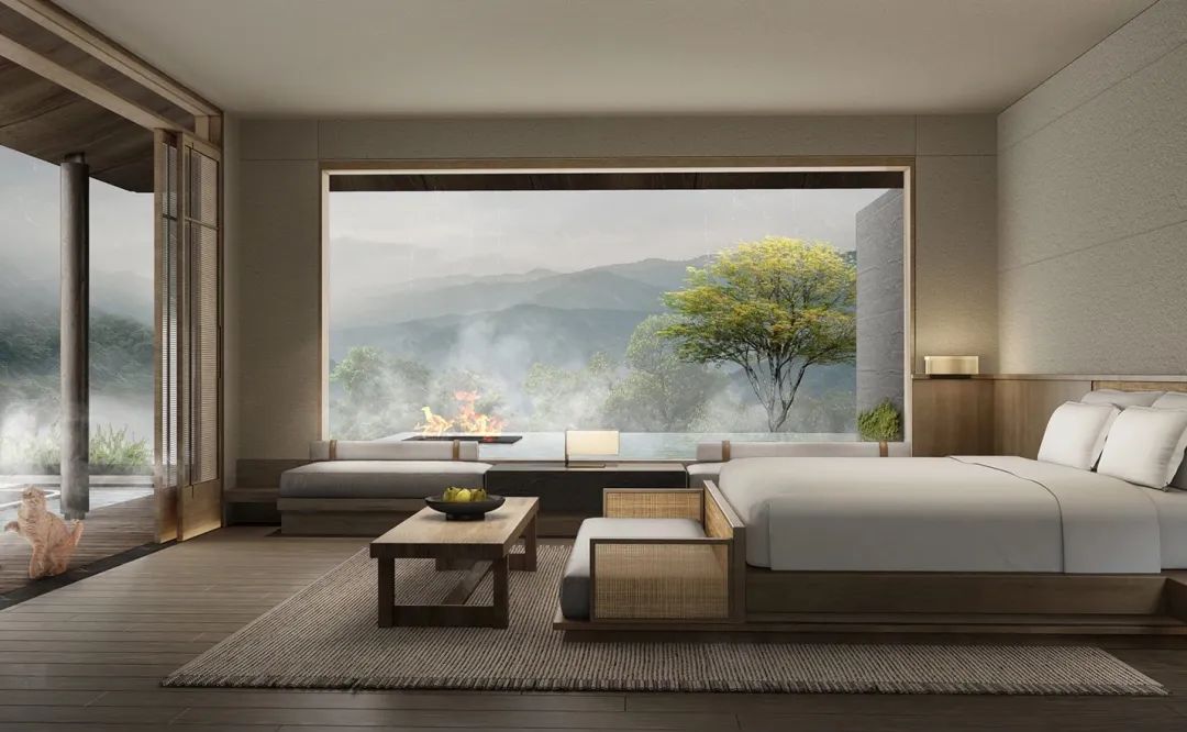 項目設(shè)計定位圍繞青城山——五糧液——森林——康養(yǎng)——度假酒店幾個核心關(guān)鍵詞展開。項目設(shè)計倡導(dǎo)“康、養(yǎng)、道、和”為生活方式,即將身體療愈,自然調(diào)養(yǎng),禪茶悟道,酒品人生為出發(fā)點,于酒店處設(shè)計東方美學(xué),東方意境的隱士生活情趣。以簡馭繁,融合在地性與自然共生,利用當(dāng)代設(shè)計手法展現(xiàn)古典人文情懷。