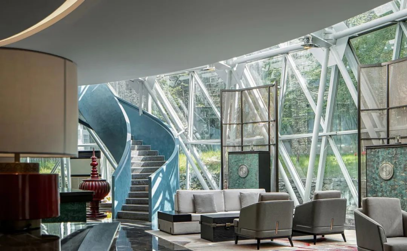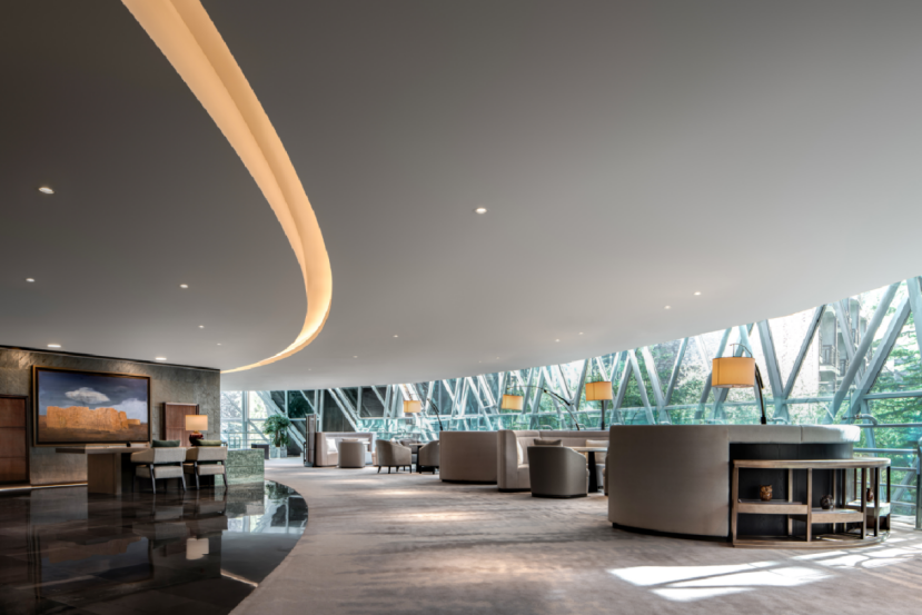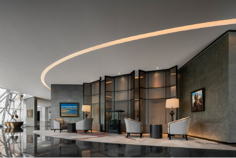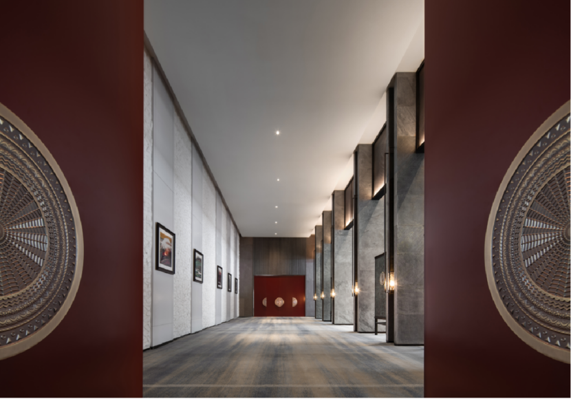 接待大堂江河設(shè)計JHD希望將故事從自然生態(tài)過渡到對于迷人的地域風(fēng)情。通過對當(dāng)?shù)氐某浞终{(diào)研,江河設(shè)計JHD保留了藏式迷人的色彩印象,用當(dāng)下工藝去詮釋藏式的邊瑪墻、融合極具天然質(zhì)感的薄石材板,同時將地域元素、文化進(jìn)行提煉整理點綴到空間中。同時創(chuàng)造性在首層接待大堂空間中置入畫廊,畫廊中的畫作均為藝術(shù)家為酒店創(chuàng)作的系列作品,將酒店的歷史風(fēng)貌及地域風(fēng)情展示出來。