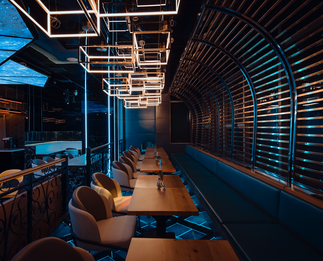 運用流線型的空間布局和曲線設(shè)計,營造出流動感和動態(tài)感?;顫姷纳屎蜔艄庑Ч蛟斐龀錆M活力和激情的氛圍。著眼于不同的藝術(shù)展現(xiàn)樣式,呈現(xiàn)出新的感官體驗,彩色光線的視覺美。