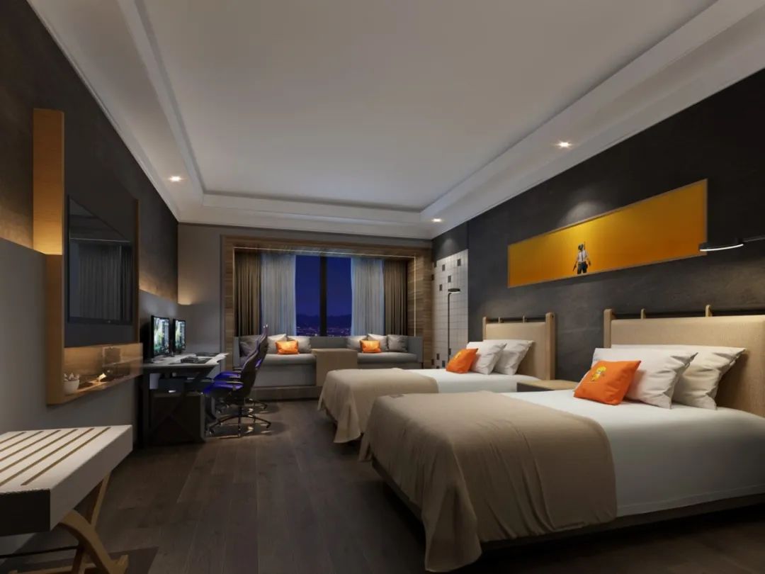 The hotel with special space temperature is mainly designed with a black color, to create deep, cool, swift and fierce atmosphere. The unique design technique brings e-sports fans a special and true illusory space.