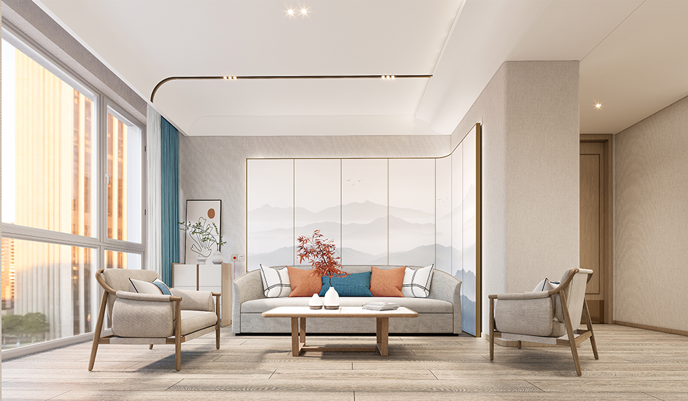 摒棄傳統(tǒng)冰冷石材,采大面積用原木色,打造一個(gè)溫馨健康得生活環(huán)境。
