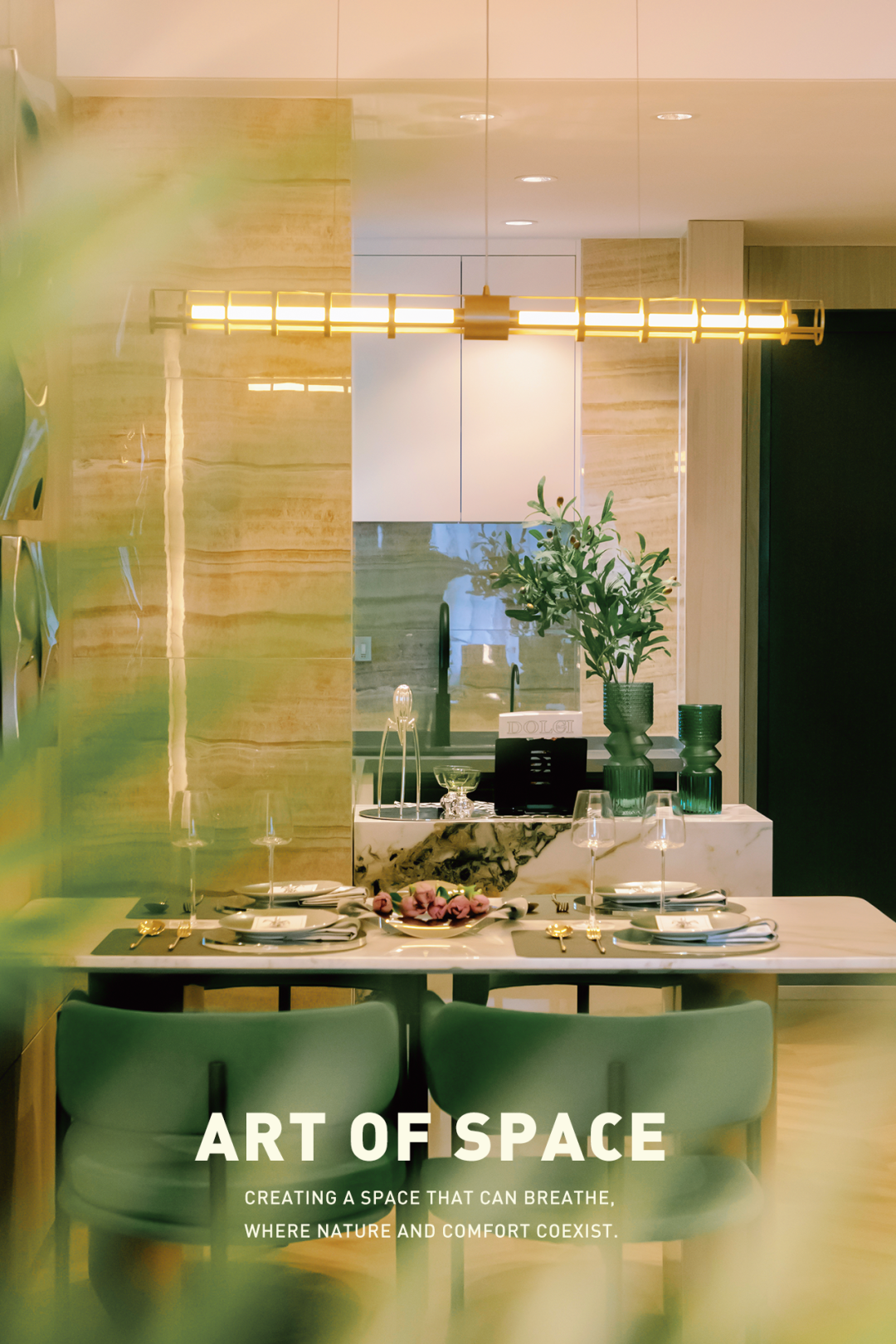 大自然總能給予人治愈身心的力量。流動的空氣,無形的水,耀眼的陽光,這些是自然賦予了我們的能量,也是最干凈原始的生存條件。于都市生活中重回自然,解構空氣,水源,陽光,用視覺呈現(xiàn)自然人文新居所。