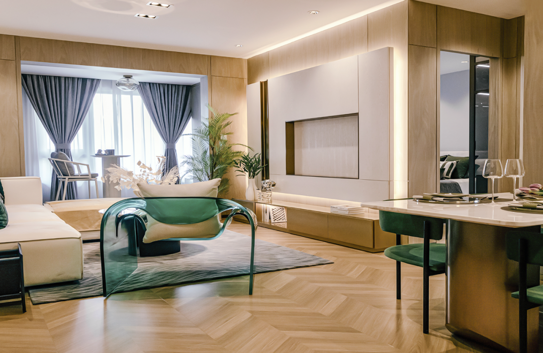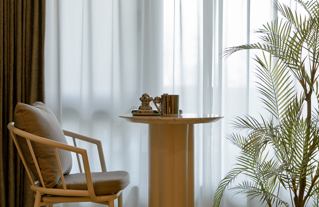 乳白色的紗簾,給陽光加了層溫柔的濾鏡,雙足漫步斑駁的綠意之上,仿佛間徜徉于熱情洋溢雨林之中,自然、通暢與愜意撲面而來。