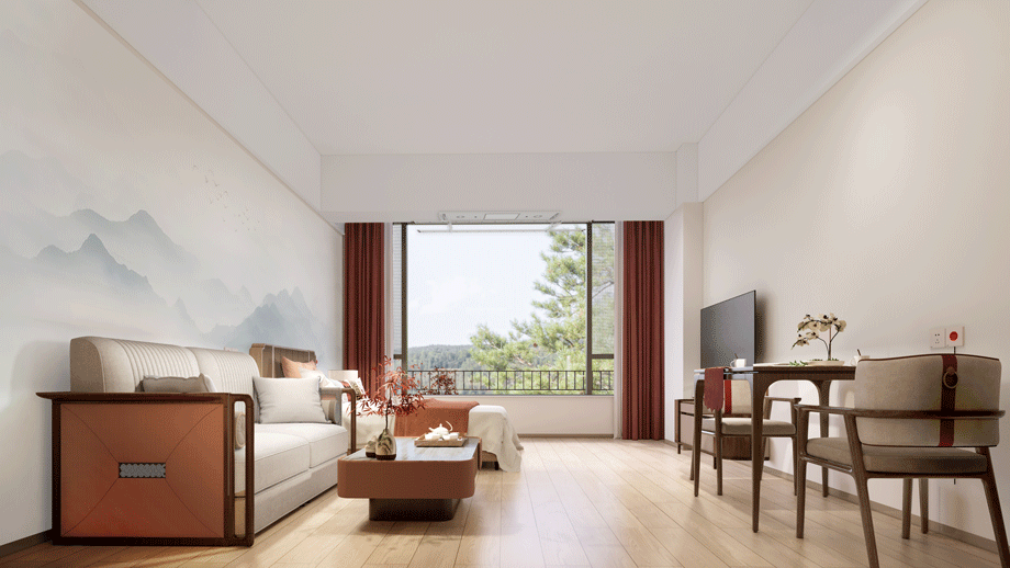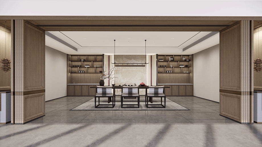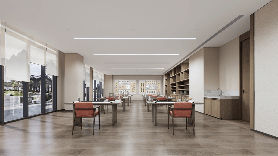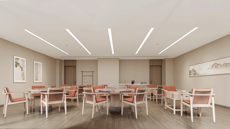接待、洽談緊鄰入口大廳、以茶室的功能形式接待老人及家庭成員,前期作為洽談區(qū),運營后,可作為老年人品茶、論茶的活動室。