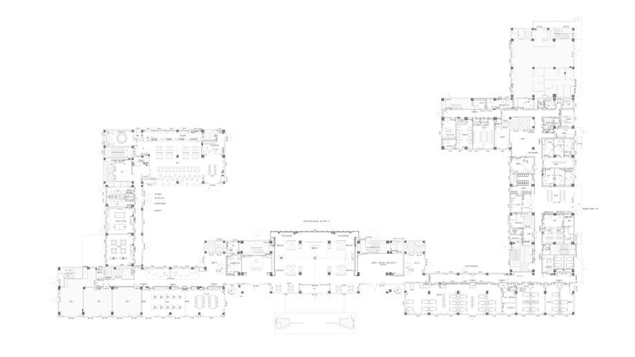 從平面布局圖上可以看出,居室都以單人間的模式一字排開,在公共走道與建筑體量的轉(zhuǎn)接處安排了醫(yī)療護理區(qū)域與公共活動區(qū)域。截取居住體量的一段可以發(fā)現(xiàn),走廊的端頭位置都是供居住單元內(nèi)的老人平日活動的區(qū)域。